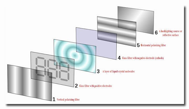 Kemudian dialirkan ke satu polariser atau penyaring optik yang membuat semua cahaya apa itu polarizer. Cahaya akan keluar dari backlight yang tidak terpolarisasi.
