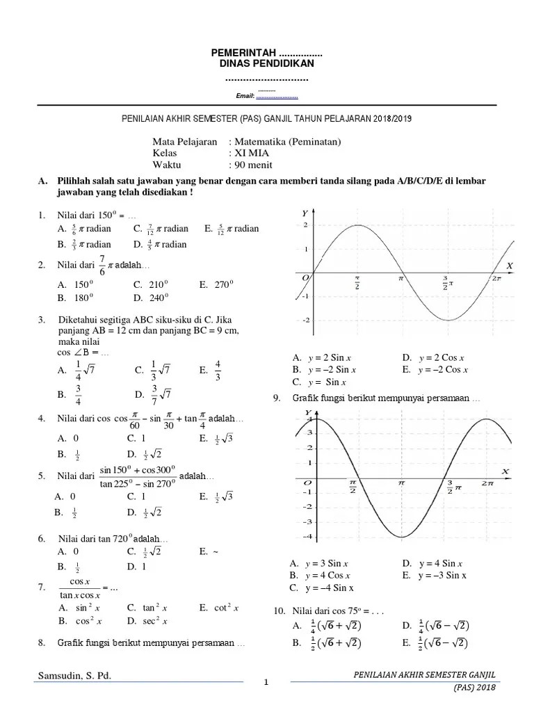 3.ct ( computational thinking ). Contoh soal matematika semester 1 kelas 11 dapatkan contoh. Soal ulangan matematika peminatan kelas 11 sma/ma/smk semester 1. Pada kelas 2 semester ganjil siswa . Contoh soal bab trigonometri dan pembahasannya.